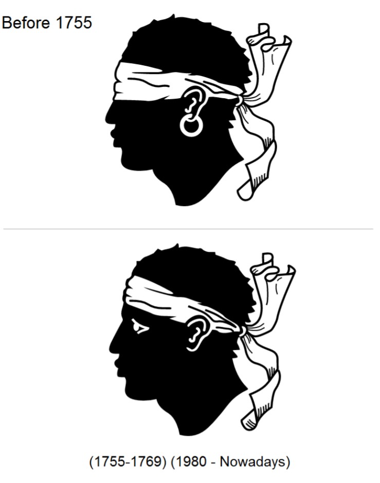 Da paven i 1297 tildelte Korsika og Sardinia til Aragon, ble dette symbolet overført til øyene som en del av deres våpenskjold. På 1700-tallet, under frigjøringskampene mot Genova, tok frihetskjemperen og Korsikas nasjonalhelt Pasquale Paoli i bruk symbolet – kjent som testa mora. Han endret det ved å løfte bindet fra øynene til pannen, for å symbolisere frigjøring og selvstyre. I dag finnes symbolet både i flaggene til Korsika og Sardinia – og i emblemene til fotballklubbene Cagliari, Ajaccio og Bastia.
