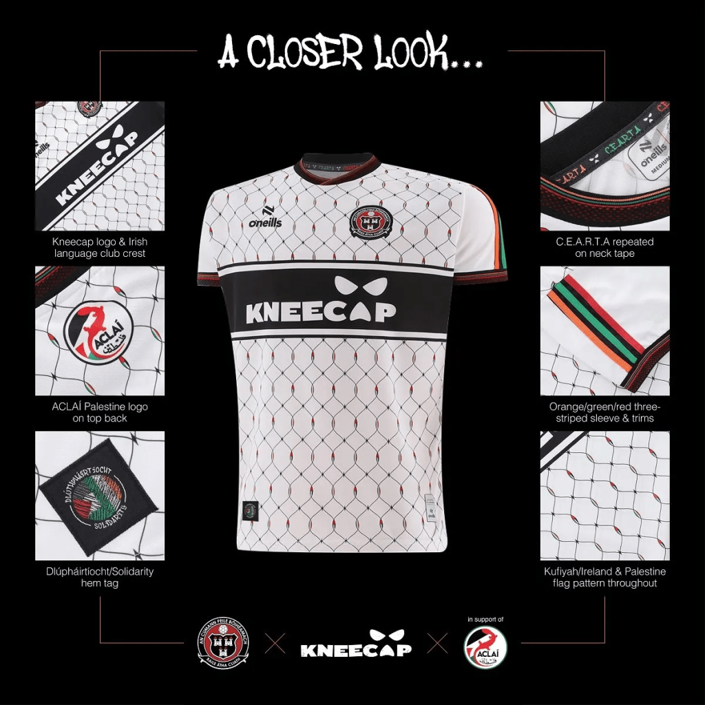 Bohemians har hatt Bob Marley på drakta si, en hyllest til mannen som ville spille på Dalymount for å sikre at flest mulig hadde råd til å komme, hvor inntektene av drakta gikk til ulike solidaritetsprosjekter, flyktninger og sosial inkludering. Musikk og Bohemians går hånd i hånd, derfor har både Fontaines DC og Oasis vært hovedsponsor til bohemene. Inntektene gikk selvsagt til prosjekter i lokalsamfunnet, veldedige formål og palestina-støtte. Noe det absolutt gjør i dag også med Kneecap som sponsor, hvor 30% av overskuddet går til Aclaí Palestine – et community-prosjekt i Aida flykningleir på Vestbredden som skal gi unge tilgang til musikk og kultur. Kneecap har, om mulig, beveget klubben enda lengre til venstre politisk, med en stemme for republikanisme, irsk identitet og selvstendighet, og tydelig motstand mot all undertrykkelse og okkupasjon.