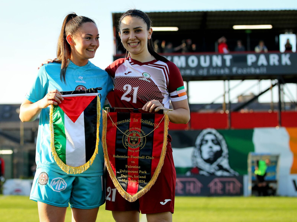 Nede langs hovedtribunen er det et ironisk reklameskilt hvor det står «Visit Palestine». Ironisk fordi Palestina ikke har betalt for plasseringen, slik man ser i de største klubbene. Det er en direkte kommentar til moderne fotballøkonomien hvor ulike stater betaler og eier fotballklubber. «Visit Qatar» har vi sett fra Qatar-eide PSG. Arsenal har fått penger fra Rwanda for å la «Visit Rwanda» lyse opp rundt omkring på Emirates Stadium. Samtidig har de, sammen med Real Madrid, AC Milan, Lyon, Bayern München og Benfica, «Fly Emirates» på magen. Manchester City er eid av Emiratene og spiller hjemmekampene sine på Etihad Stadium, et annet flyselskap fra samme land. Og nord i England finner vi Newcastle, som er eid av Saudi Arabia. Men støtten til palestinerne fra Bohemians og majoriteten av irer er genuin. De vet hva okkupasjon og undertrykkelse betyr. For dem er det en selvfølge å vise solidaritet med folk som lever under okkupasjon. Og de som sier tydeligst ifra, er Bohemians.